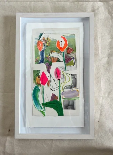 Tulip  , 2025, collage and mixed media on paper, 12 3/4 x 21 framed, $1,100